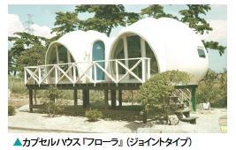 現在は取り扱っておりませんが、1972(昭和47)年から10年間ほどで500戸以上を製造販売したカプセルハウスで、FRP製の建築物としては、わが国ではじめて建設大臣の認定を受けた、カプセルハウスの草分け的存在です。