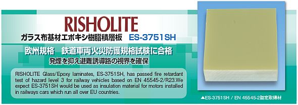 この度、リショーライト ガラス布基材エポキシ樹脂積層板 ES-3751SHが、欧州域内における鉄道車両の防火規格を定めたEN 45545-2の試験に合格しましたのでご報告申し上げます。